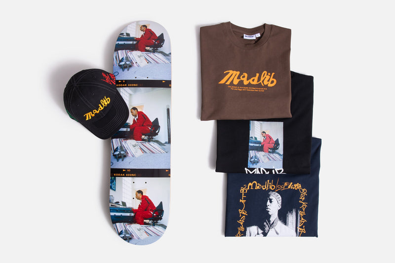 Releasing online at Atlas Friday, December 5th at 12:00 AM PST is the special Butter Goods X Madlib capsule collection featuring t-shirts, headwear and a photo deck. It will also be available for in store pickup and at our store at 11:00 AM PST the same day.