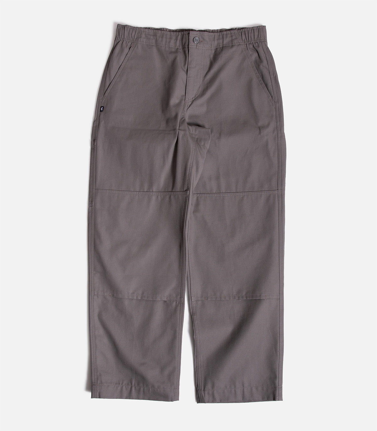 100% cotton mid-weight pants with a utility pocket, back slit pockets, durable construction, a loose fit and double knee construction.