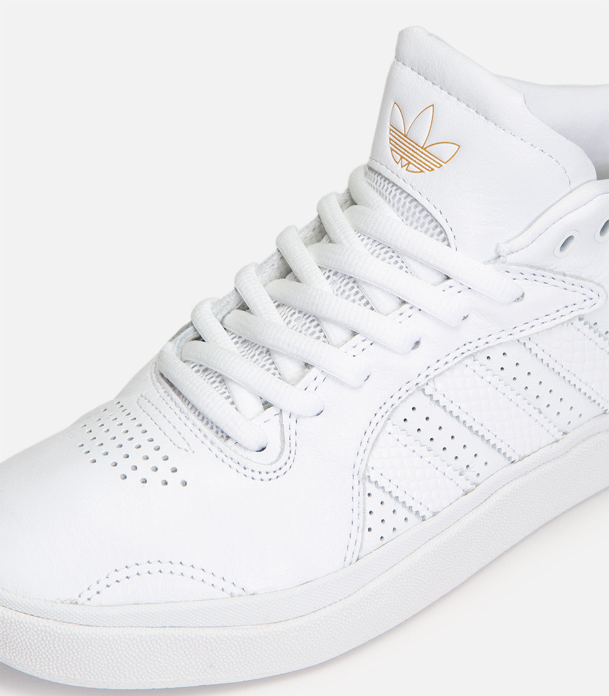 Smooth leather upper with white rubber cup sole, Adituff reinforced toe, EVA midsole, an inner vulc wrap, PU molded sockliner and memory foam tongue.