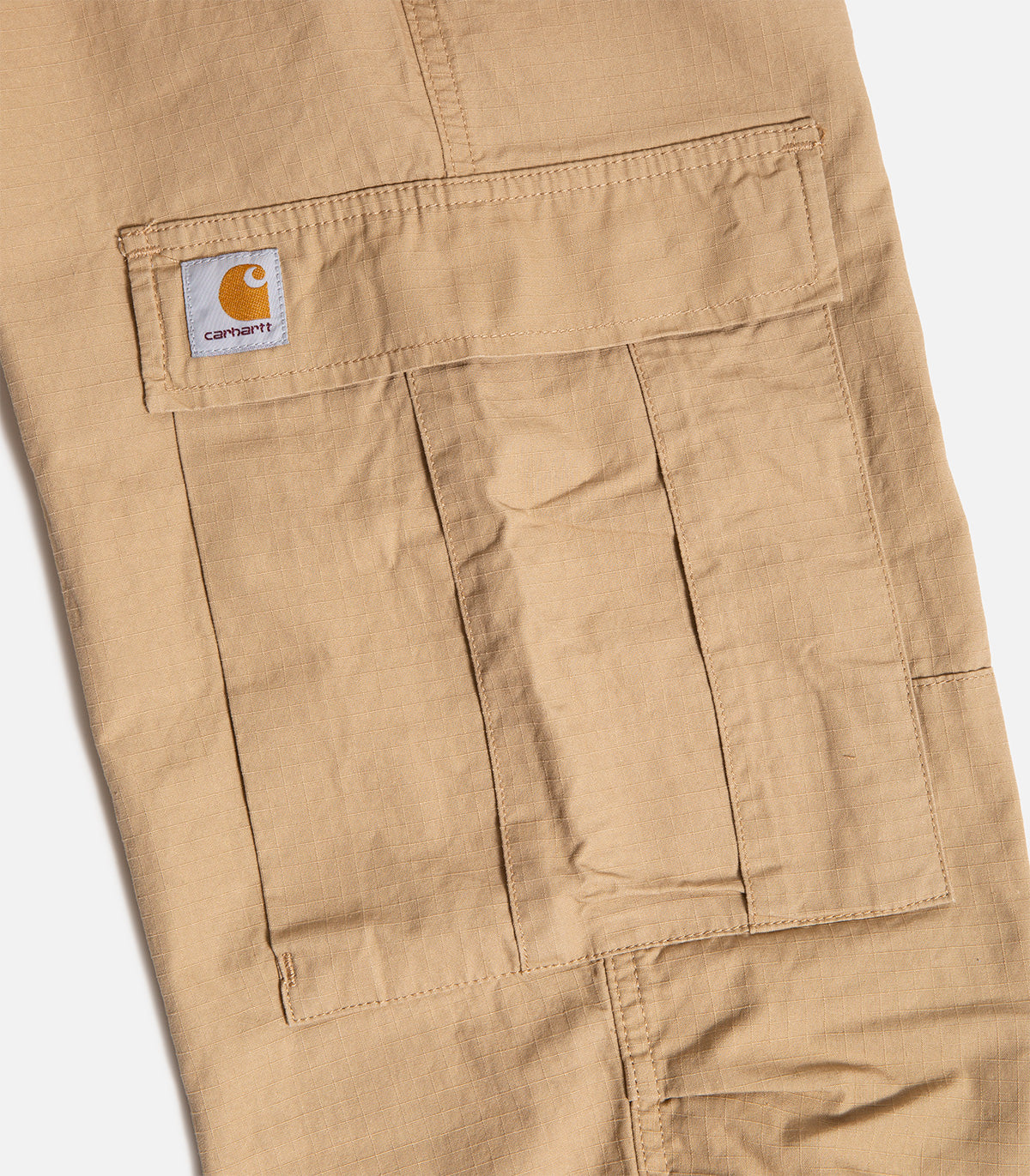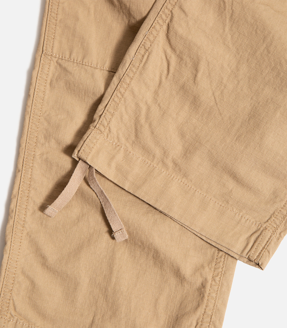 Regular fitting durable cargo pant constructed with lightweight cotton ripstop fabric.