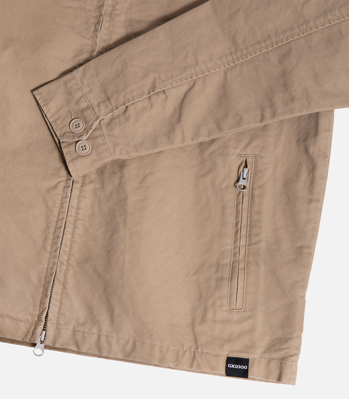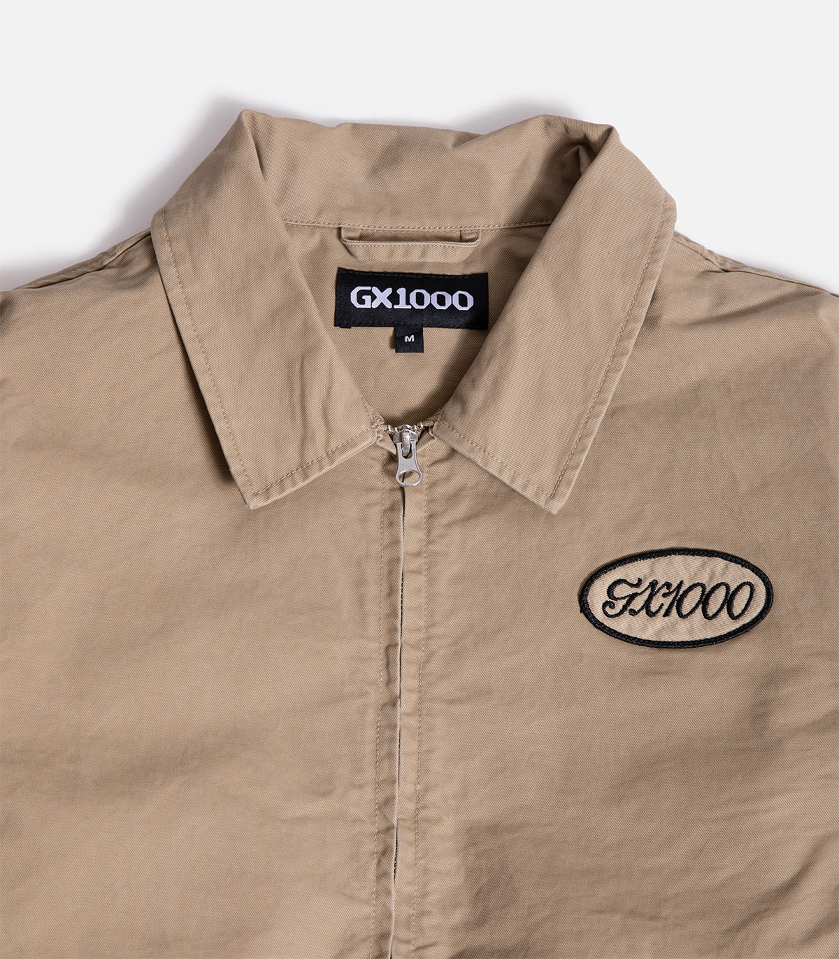 100% cotton jacket with two front zip pockets and an embroidered patch graphic.