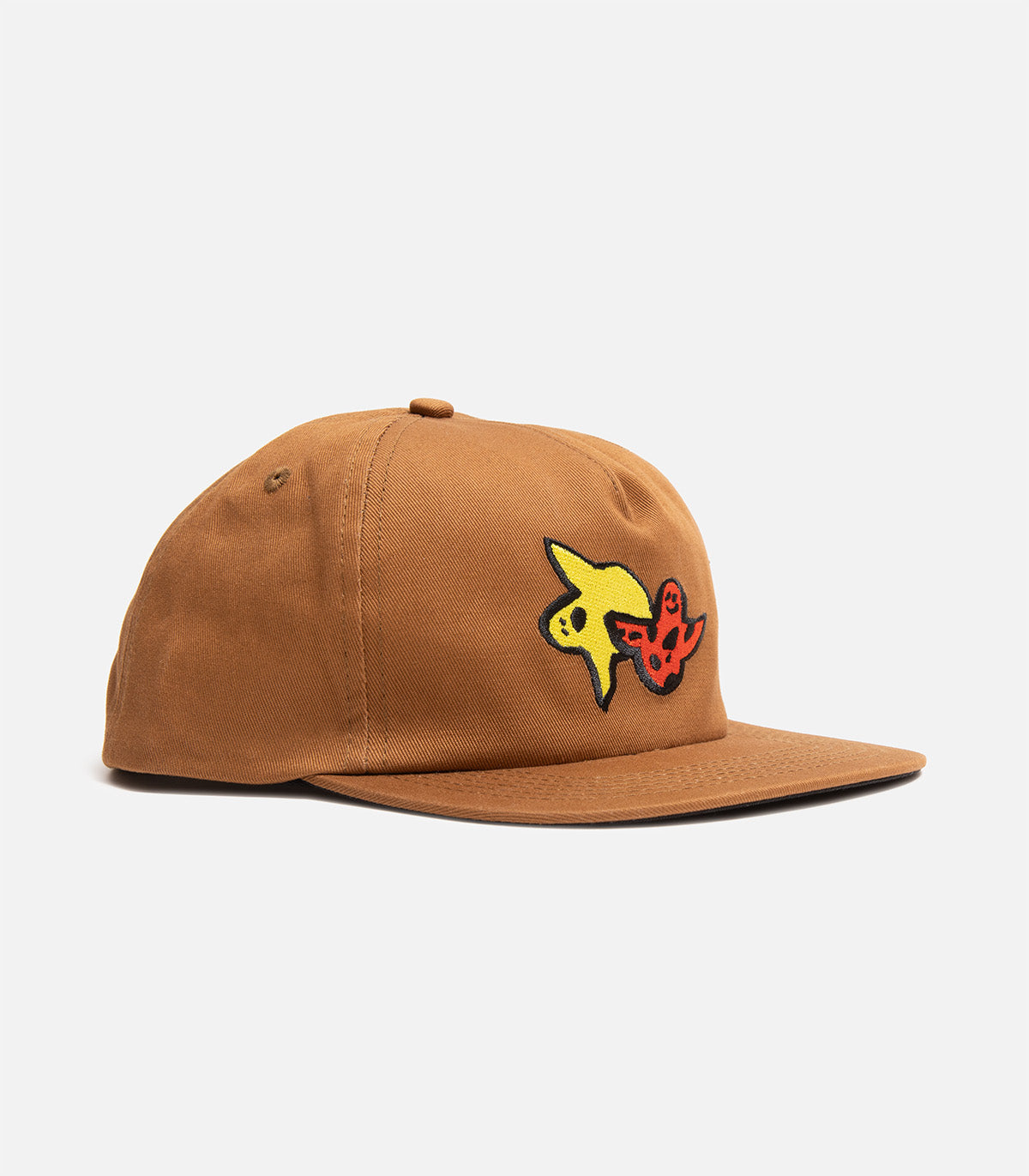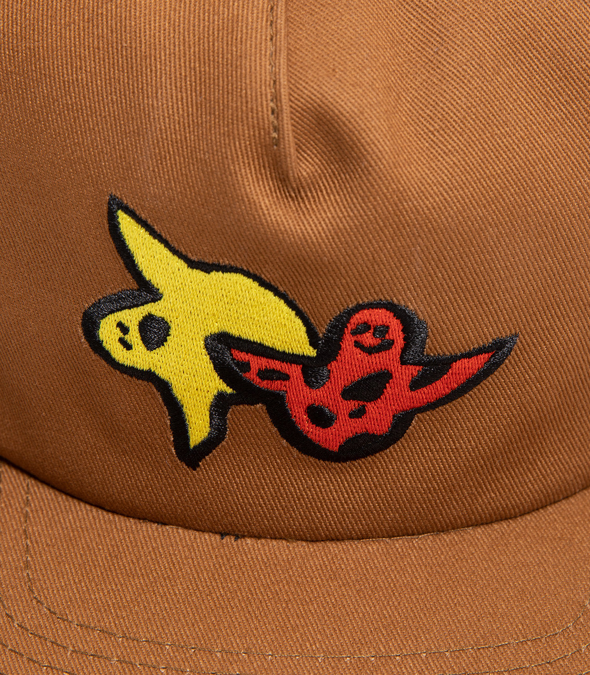100% cotton 5 panel hat with embroidered graphic and an adjustable closure.