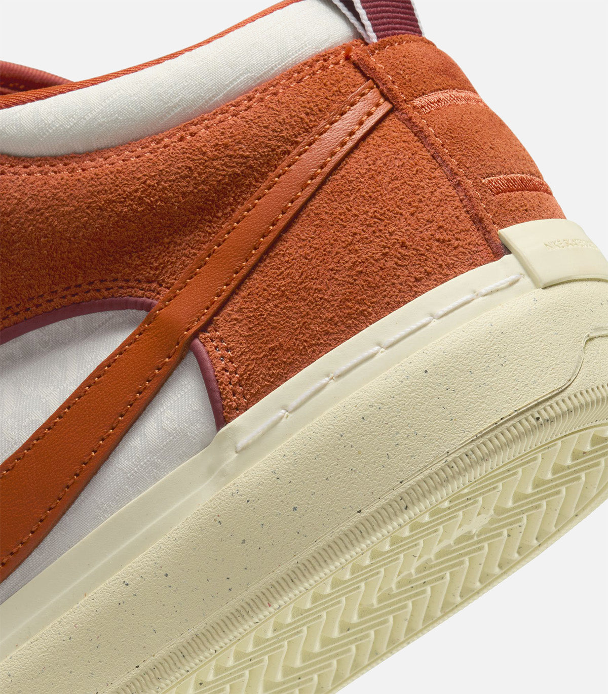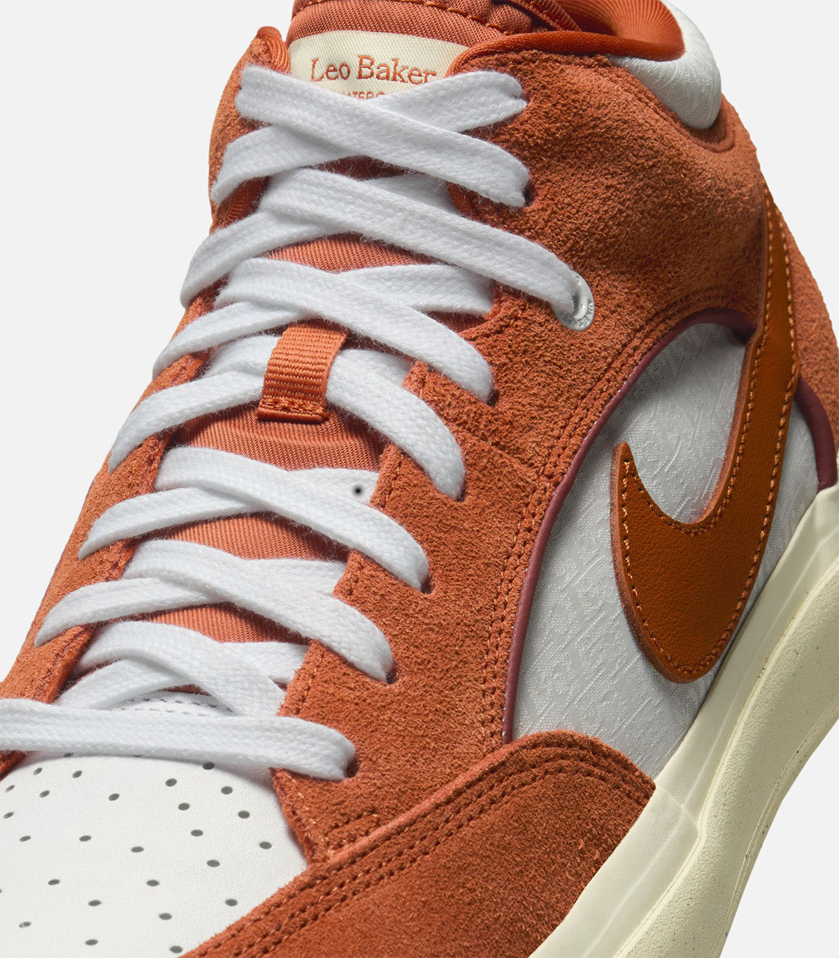 Leo Baker's debut signature shoe features a high quality leather upper with suede overlays in high-wear areas, heel pull tabs and triple-reinforced stitch details in the ollie and toe areas. The Nike React midsole features a cupsole/vulcanized hybrid construction for quick break-in, board feel and impact cushioning.