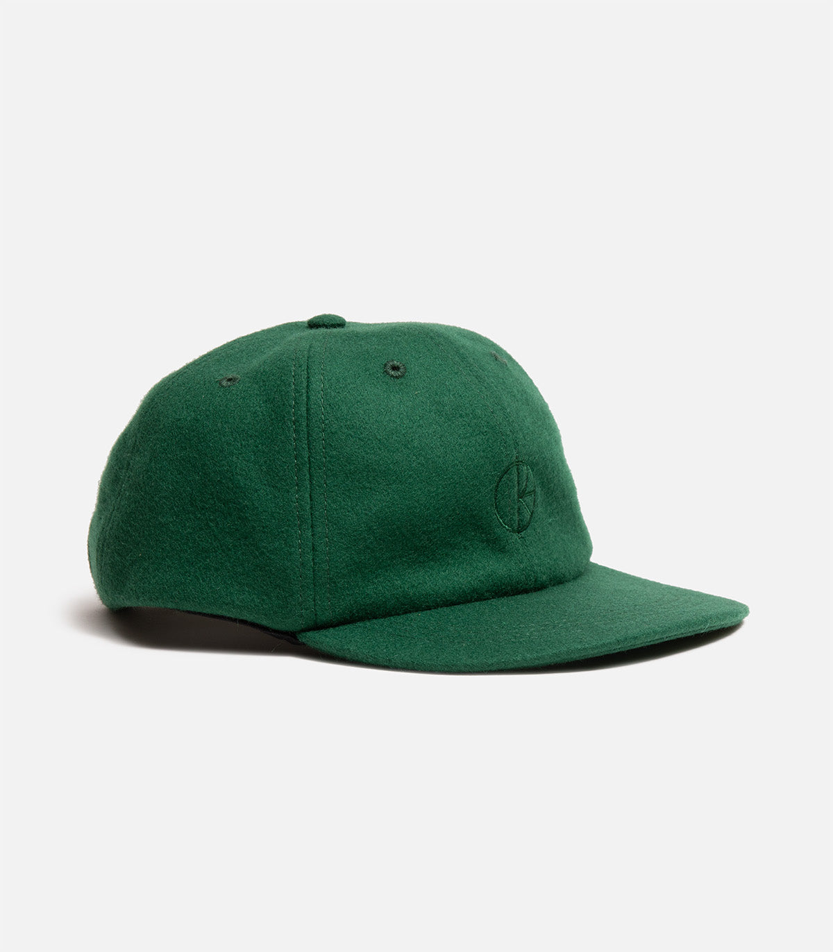 70% wool/30% polyamide unstructured 6 panel hat with embroidered logo and an adjustable closure.