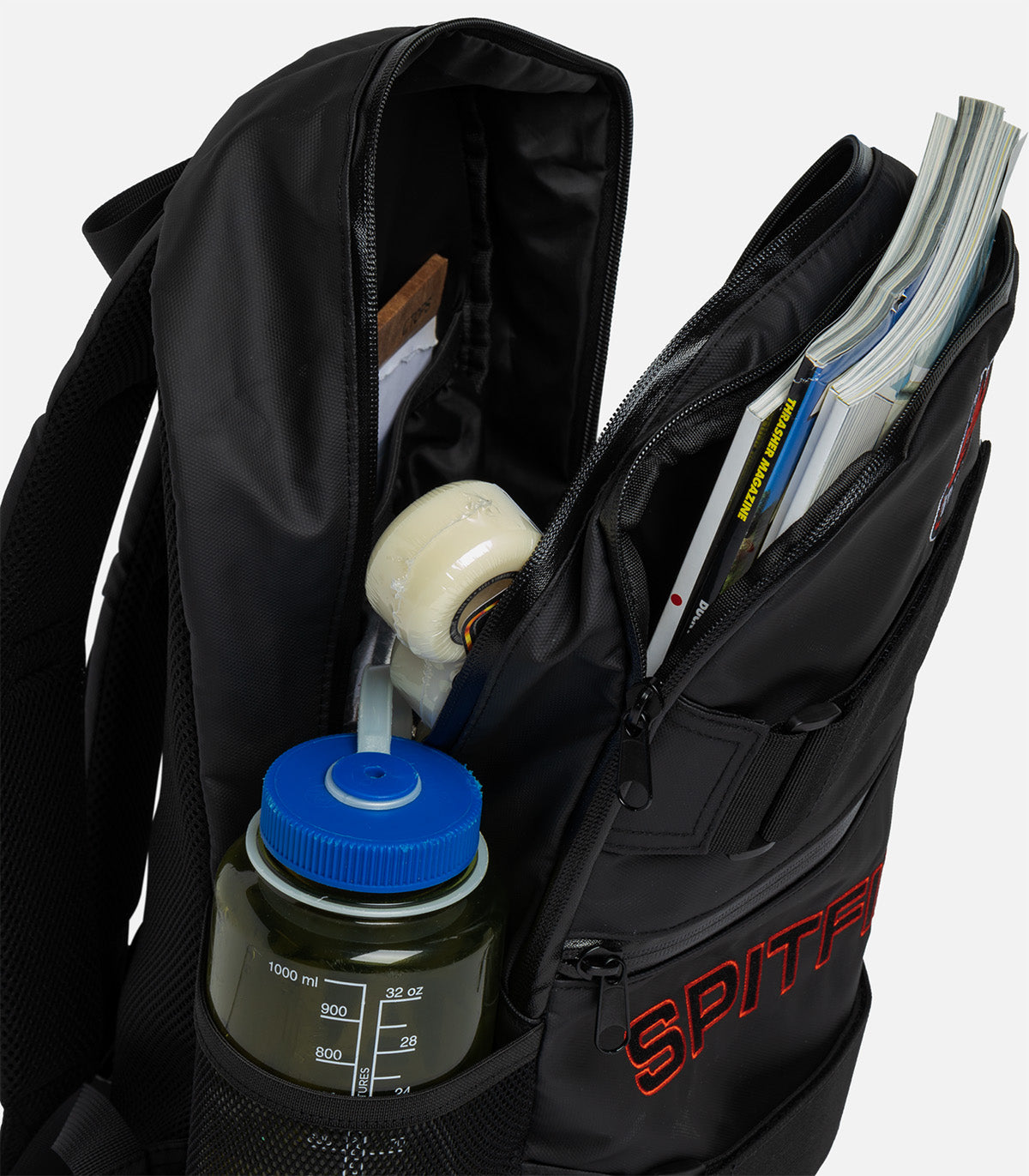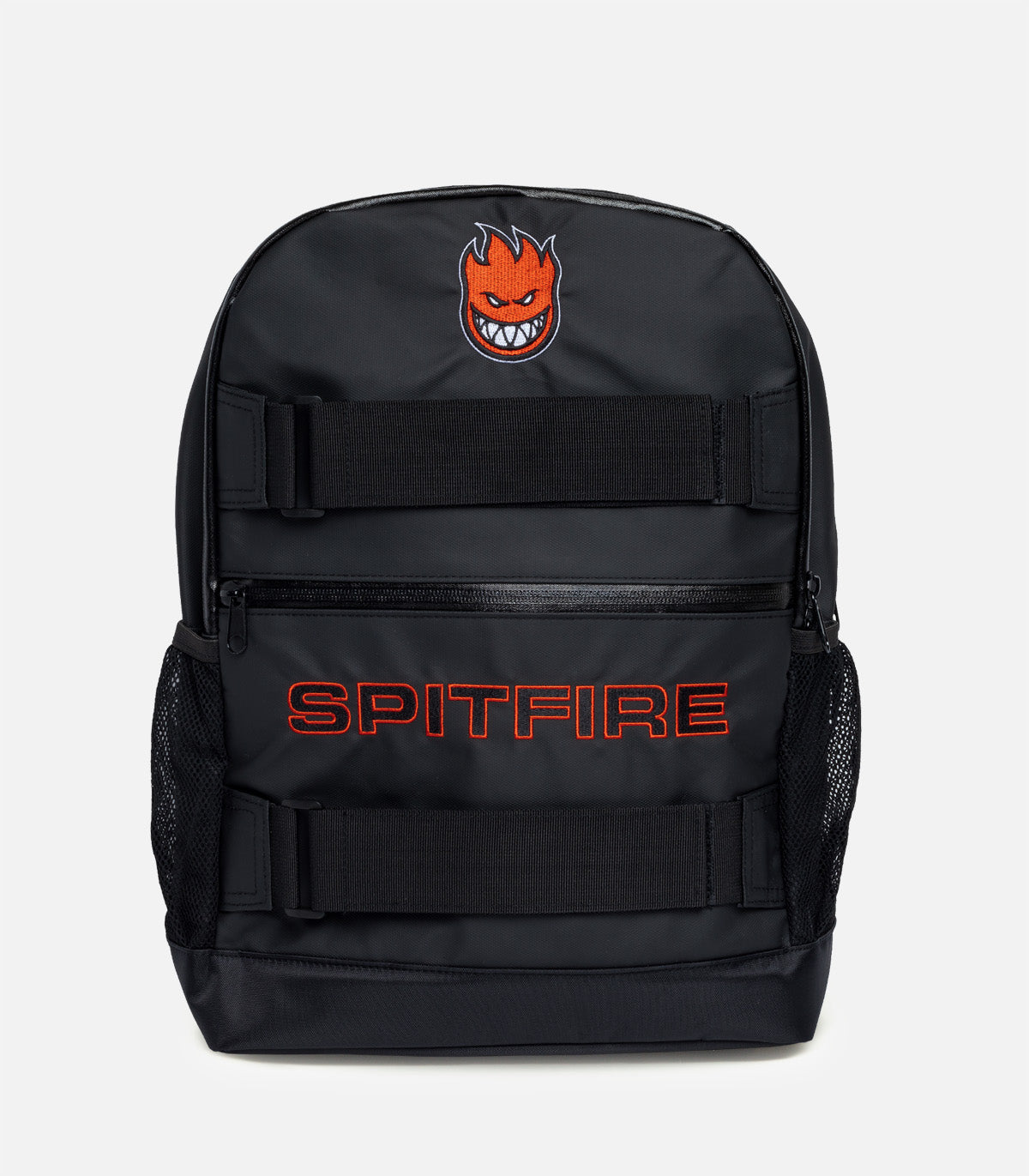 Backpack with board straps, embroidered logos, a water bottle pocket, multiple compartments and more.